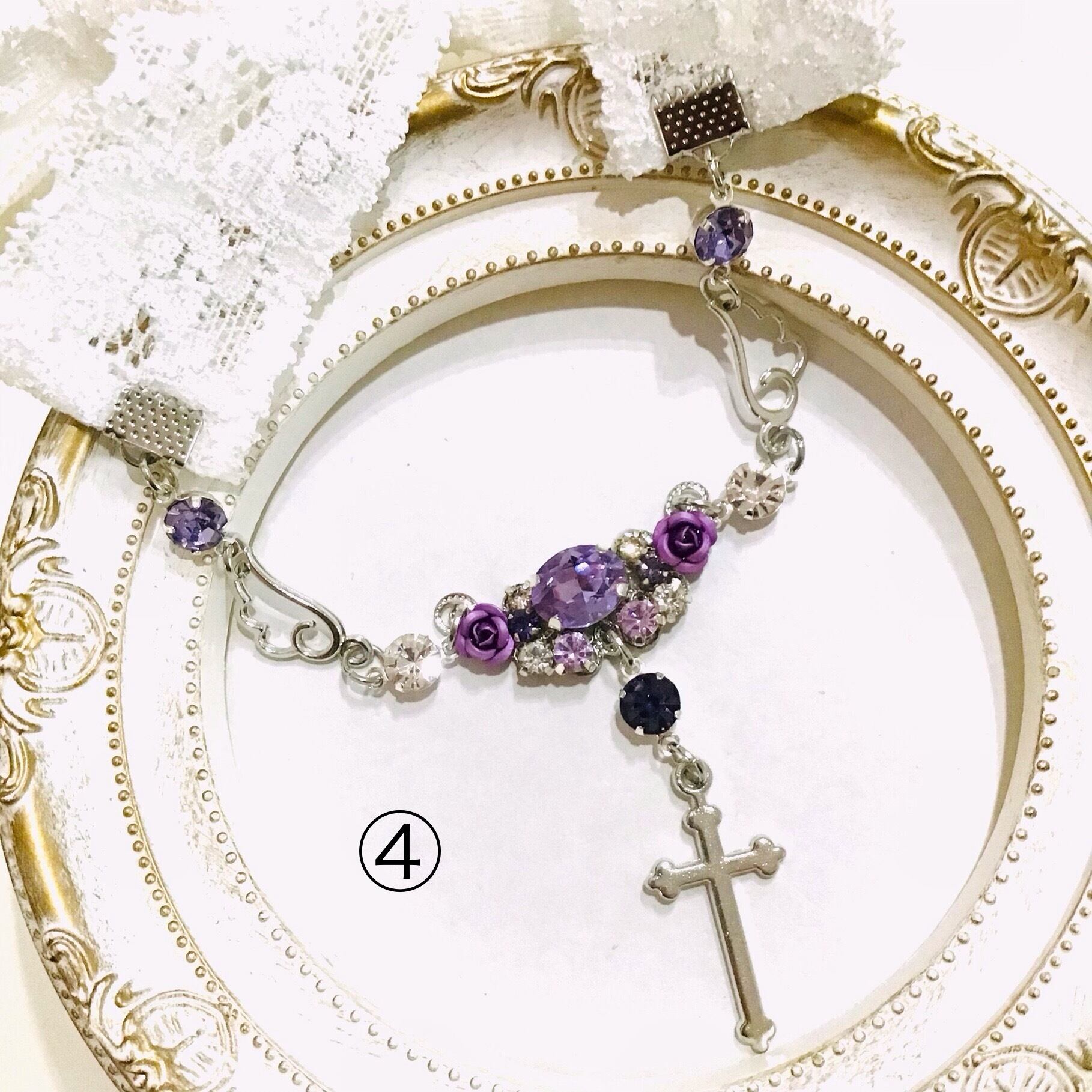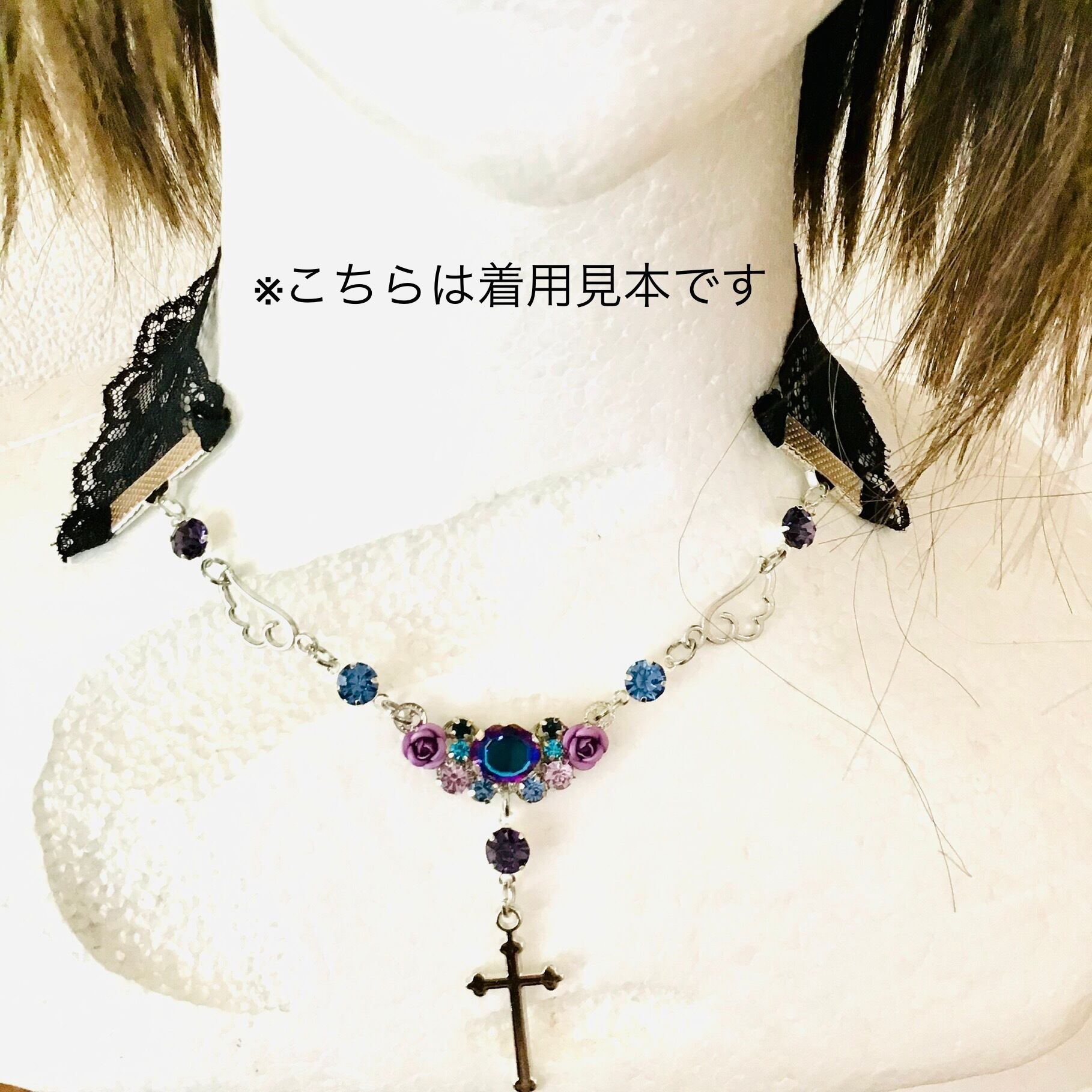 ☆レースを結んで使う首飾り☆薔薇×十字架×羽