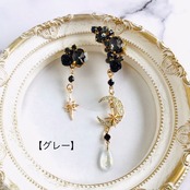 ガラスのビジューとアルミ薔薇、月パーツなどを組み合わせたイヤーカフです。